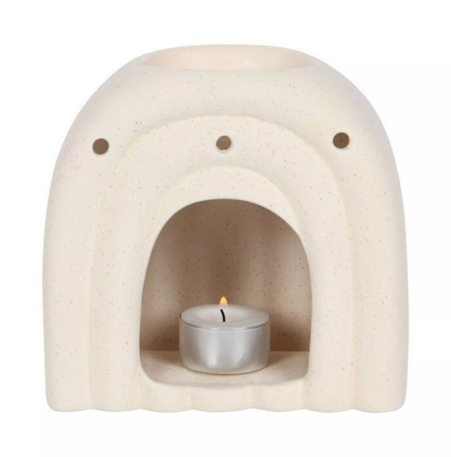 Dieser Brenner schafft eine warme Atmosphäre und besteht aus Dolomit mit gesprenkelter und strukturierter Oberfläche.