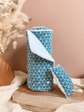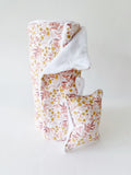 The washable sponge is made of a decorative cotton side and a terry cloth side. It is padded with wadding to ensure quick drying.