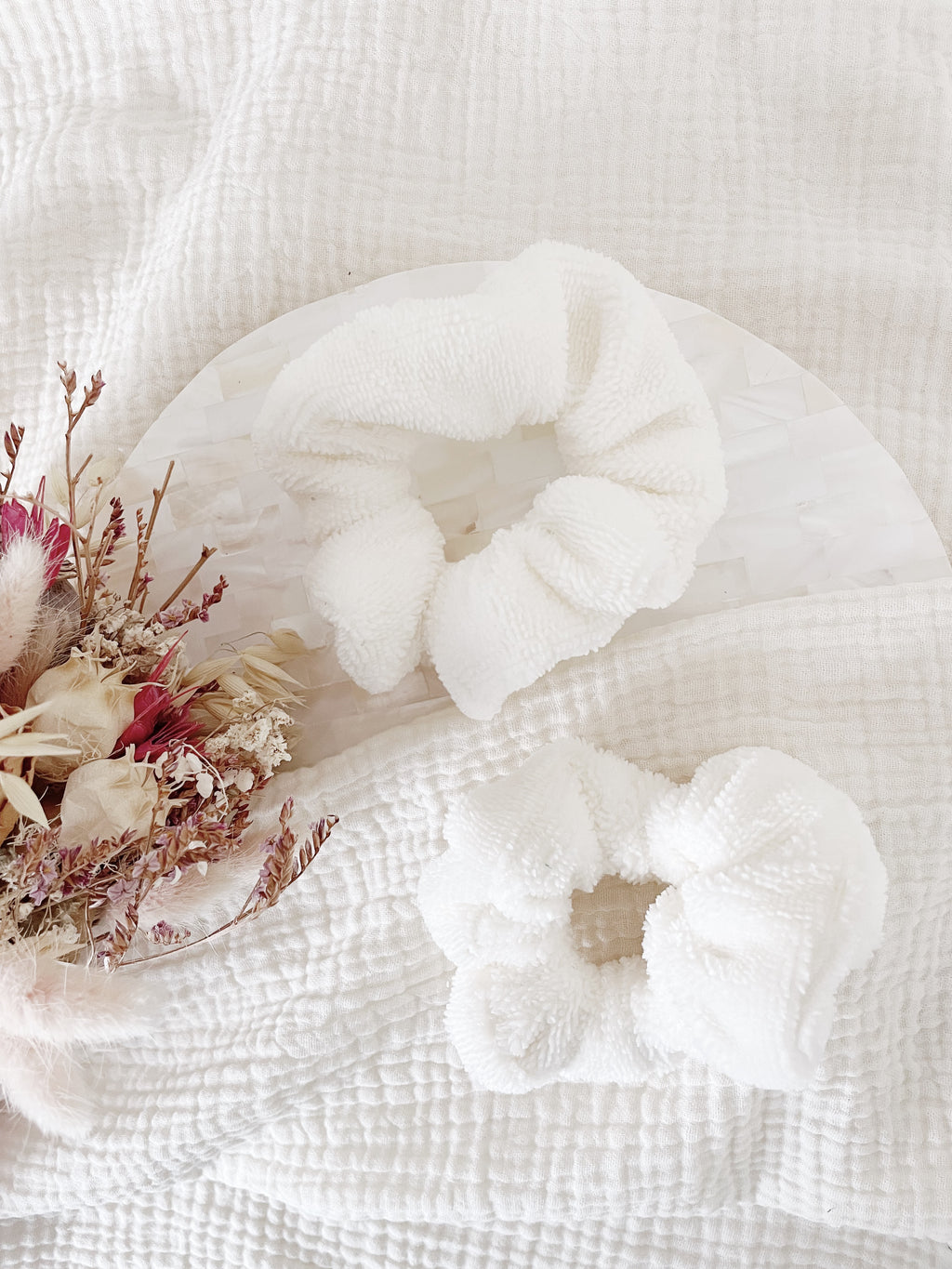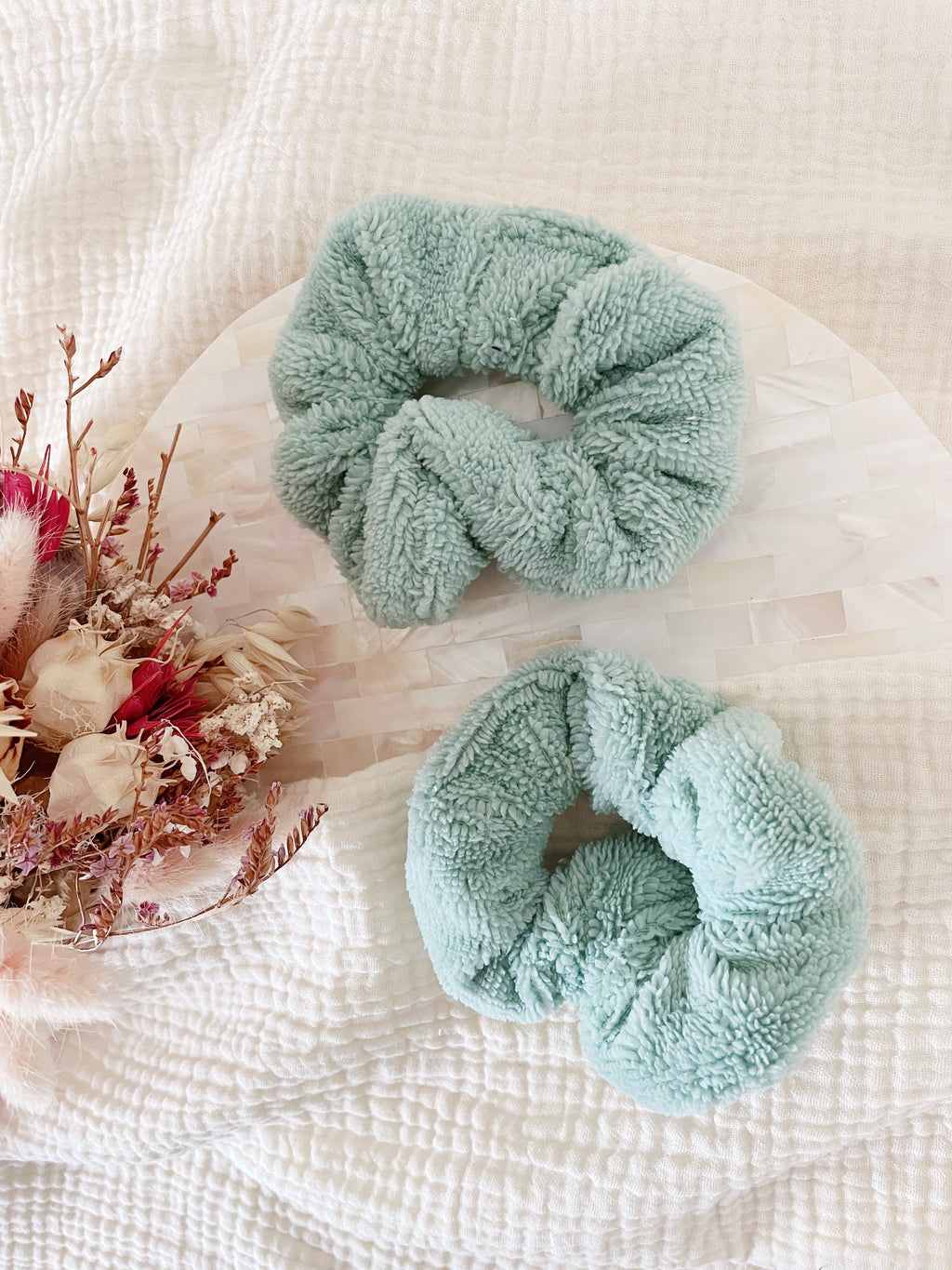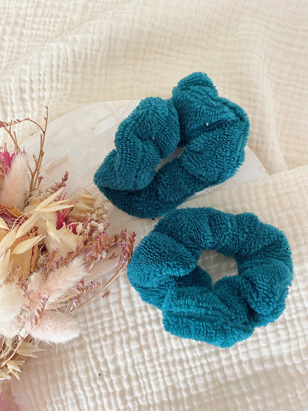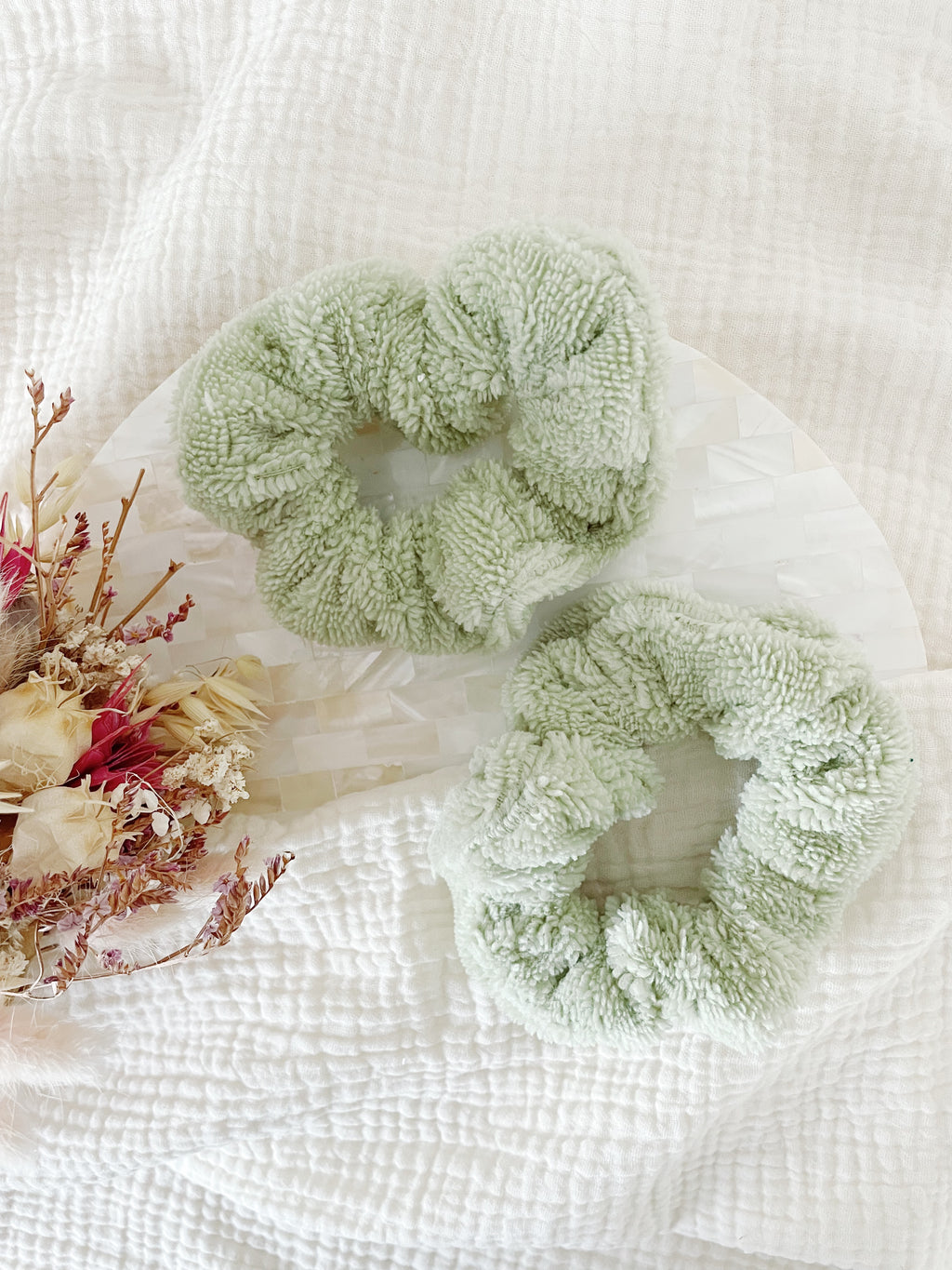 Wear these 2 bamboo sponge scrunchies on your wrists during your facial routine, so you won't have water running down your arms.